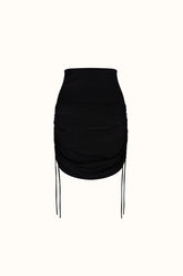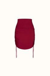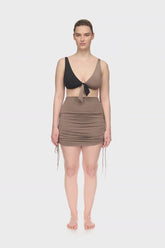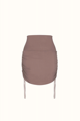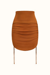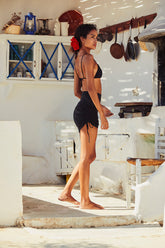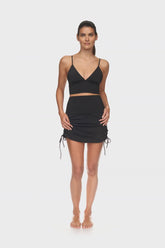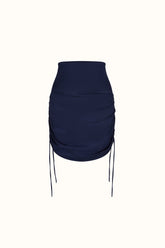 We’ve finally answered to your demand for cover ups! This ruched, tie at the sides skirt, benefitting from a wide double lined elastic band is the ultimate match for all Talia Collins swimwear. It’s made in the same matching fabric to be paired with your favourite one piece or bikini. Its adjustable length makes it the ideal style companion for an effortless transition from beach to restaurant.