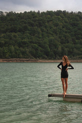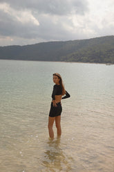 The Kate Dress is designed in our sustainable & silky swimwear fabric and offers removable bra pads making it your perfect little black dress for a beach to restaurant transition.