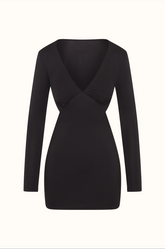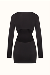 This silky long sleeved bodycon dress offers a deep V neckline and carefully placed cut-outs to flatter all body shapes giving the illusion of a smaller waist.